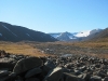 Nur einen Katzensprung entfernt vom Longyearbyen-Campingplatz liegt das Tal Bjørndalen. Immer entlang der Isfjord-Küste gehend merkt man der Strecke die fünf Kilometer gar nicht an. Vorbei am Leuchtfeuer, das die Einfahrt in den Adventfjord kennzeichnet, zwischen einer Handvoll Ferienhäuschen hindurch, hat man das Tal im Nu erreicht.
