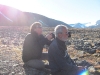 Das Wetter meint es gut mit uns. Auch auf dem Rückweg müssen wir nicht im Schatten der Berge oder gar Wolken laufen. Egal wie untypisch solch lang anhaltender Sonnenschein für Spitzbergen ist – wir freuen uns!